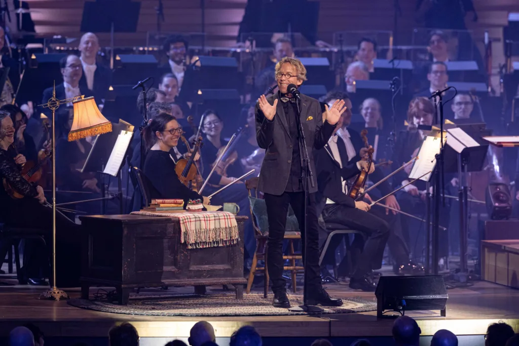 Et lorsque cet imaginaire croise celui de Maestro Nagano et de son grand orchestre l’OSM, cela donne des frissons de plaisir, des cascades de rires et des montagnes de bonheur! C’est ainsi que Fred Pellerin, avec son nouveau conte « L’Inopinée conception », nous a fait vivre l’un des plus beaux après-midis du temps des Fêtes! Son fidèle admirateur et complice des tout débuts, Kent Nagano, souriait et rigolait lui aussi, sa baguette magique à la main, à chacune des fantaisies oratoires de notre célèbre Caxtonien. (Il serait parent avec l’une des sectes les plus brillantes des humoristes martiens que je n’en serais pas surprise…)
