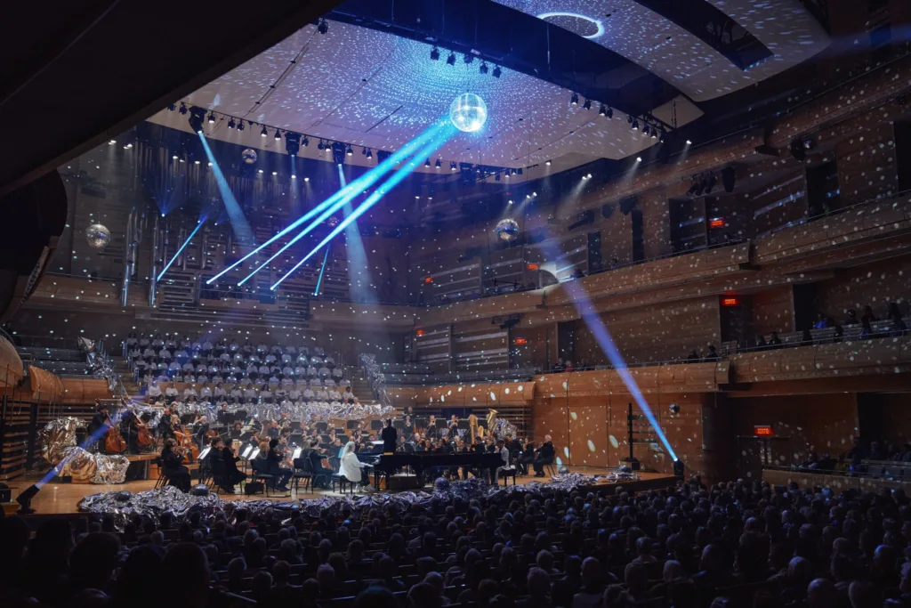 La première partie du concert était exclusivement dédiée à l’album Neiges d’André Gagnon. Un immense piano double à queue trônait au centre de la scène. Tout autour et derrière, l’Orchestre et le Choeur métropolitains se déployaient en harmonieux gradins.