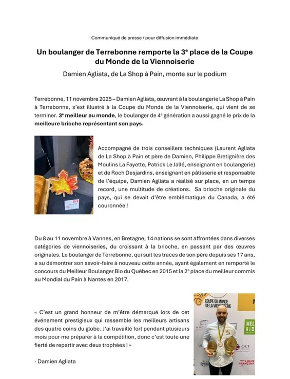 Coupe du Monde de la Viennoiserie | Damien Agliata, de Terrebonne, remporte la 3e place !