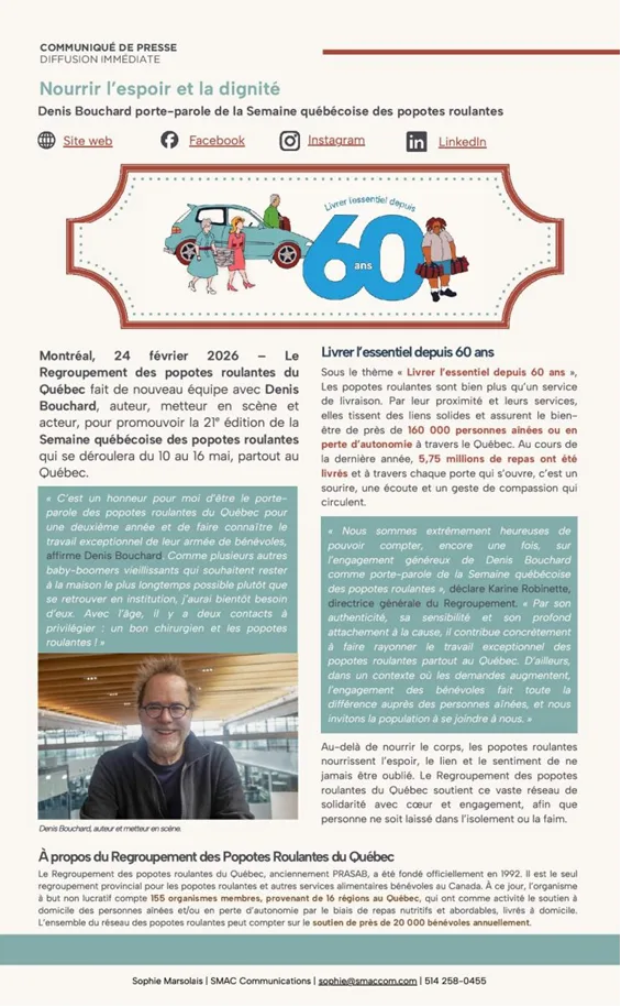 DENIS BOUCHARD PORTE-PAROLE DE LA SEMAINE QUÉBÉCOISE DES POPOTES ROULANTES