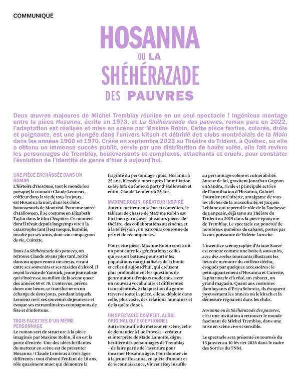 Hosanna ou La Shéhérazade des pauvres de Michel Tremblay