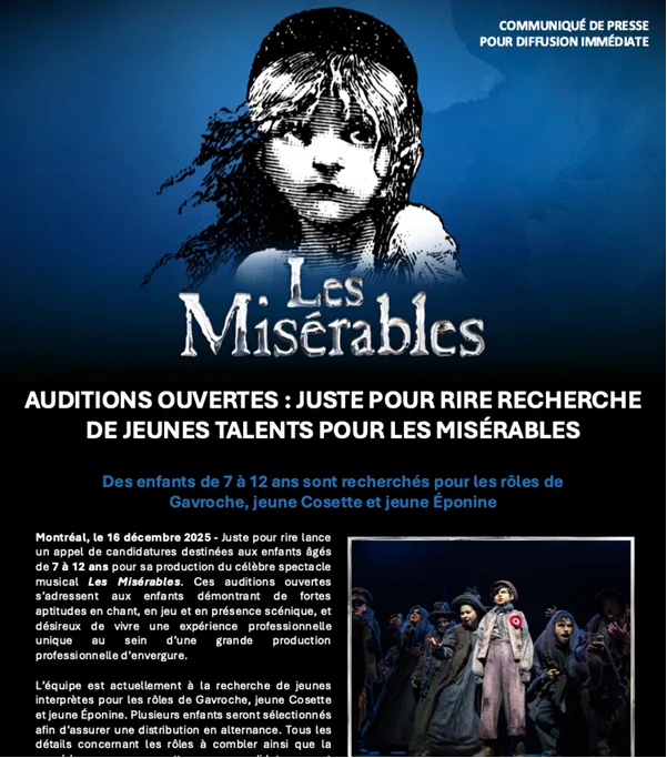 Juste pour rire recherche de jeunes talents pour « Les Misérables » !