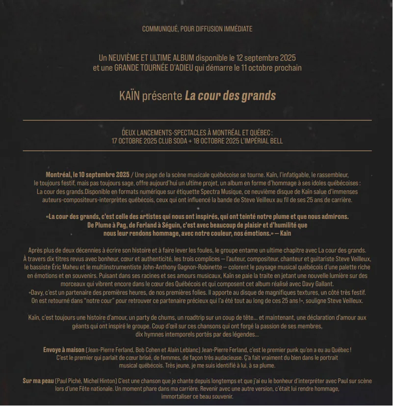 KAÏN ADRESSE UN MOT D’ADIEU AU PUBLIC ET À SON ÉQUIPE ICI ! |
